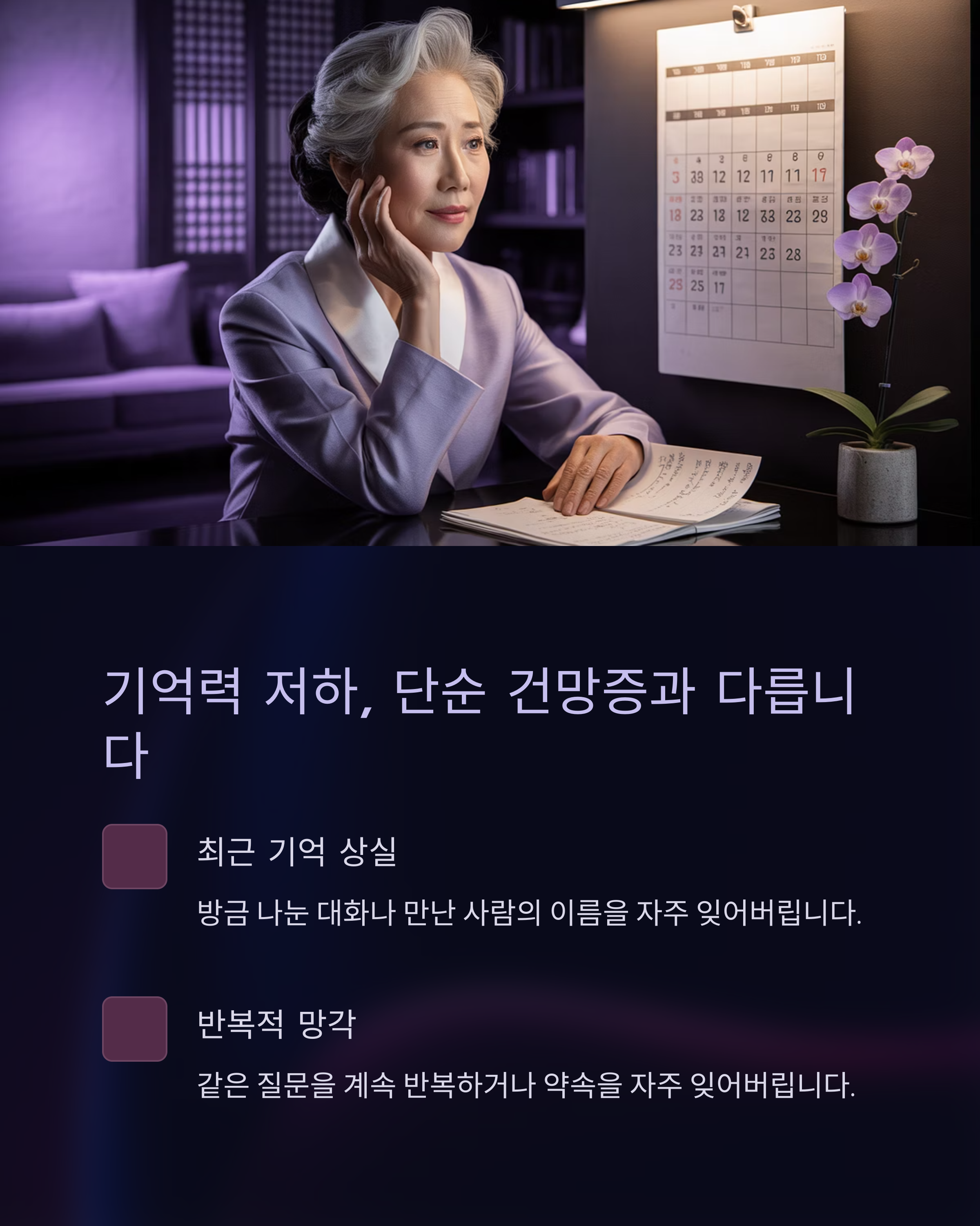 인지기능 저하 신호일 수 있으니 관찰이 중요합니다.