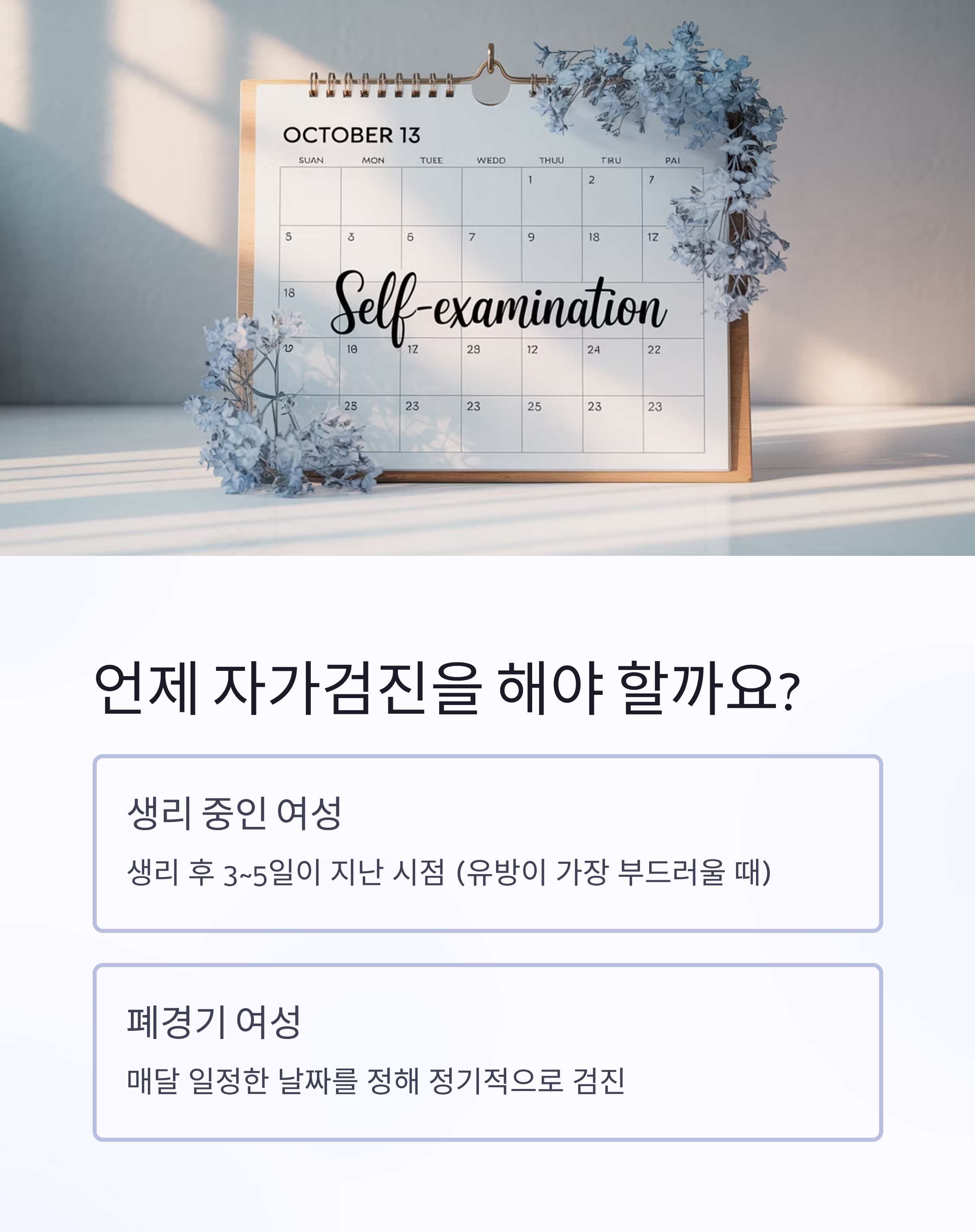 이 시기를 놓치면 유방 조직이 단단해져 변화를 느끼기 어려울 수 있으므로 주기적인 습관이 중요합니다.