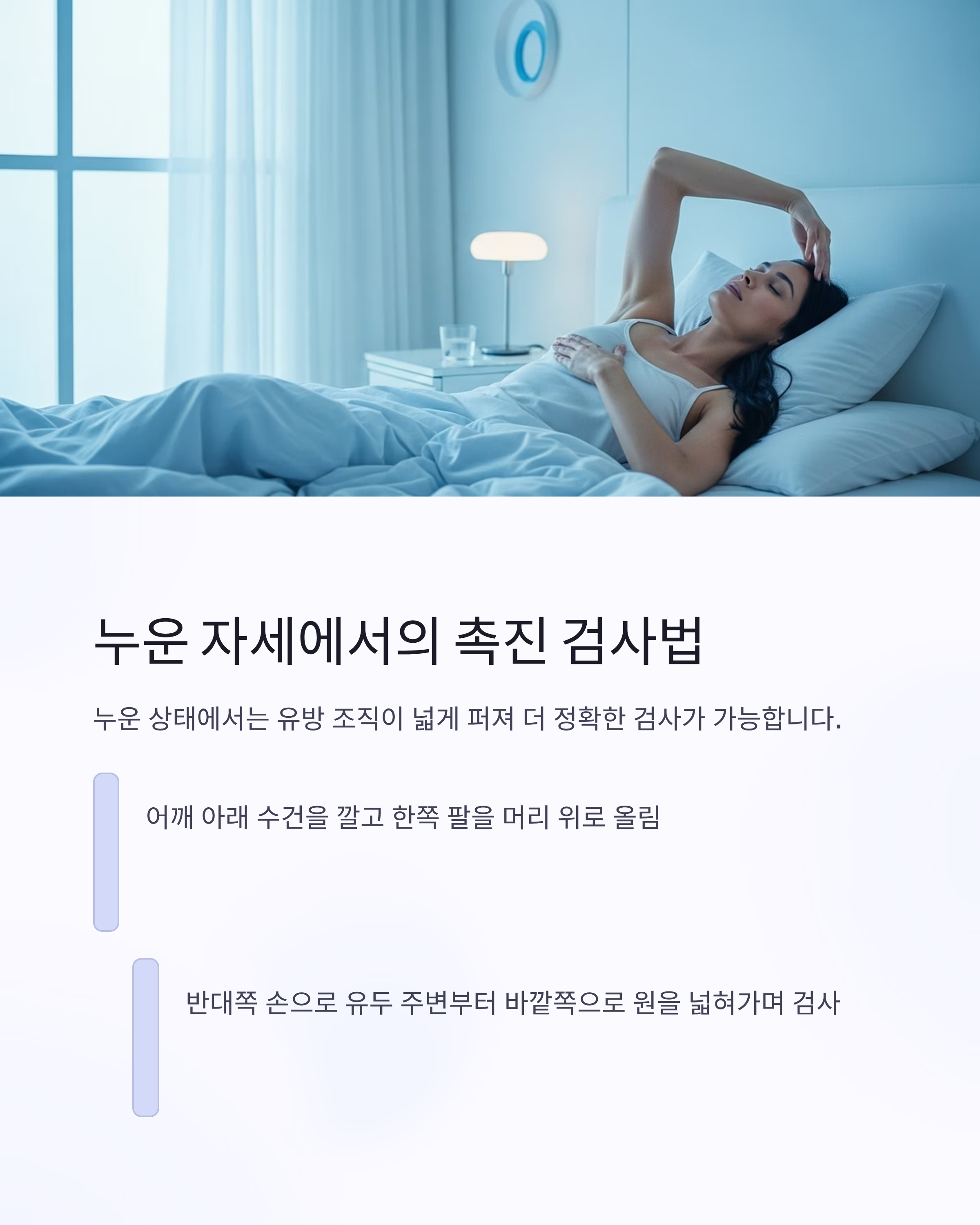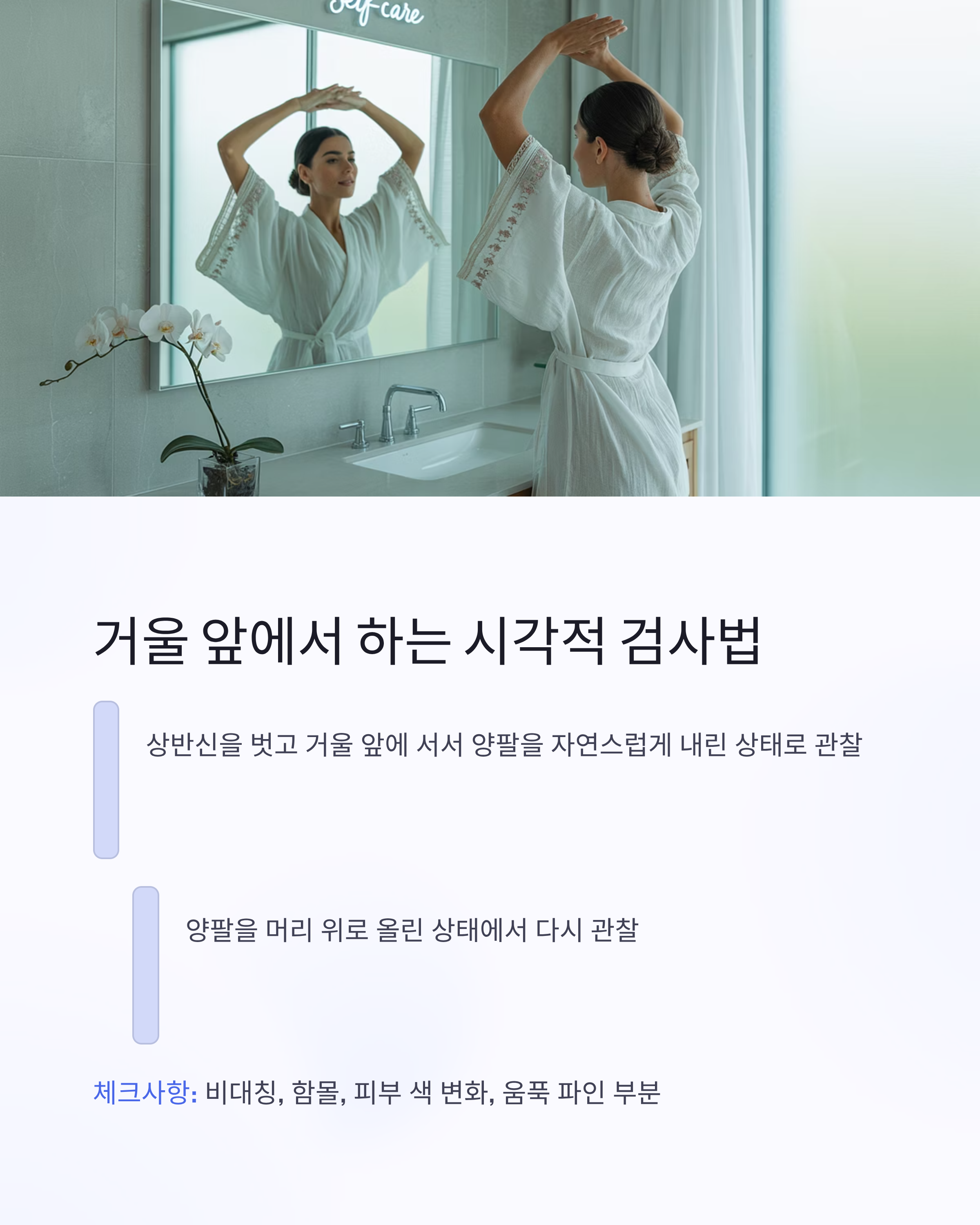 자가검진은 기본 단계이며, 병원에서의 전문적인 영상 촬영이나 의사의 촉진 검진과 함께 병행하면