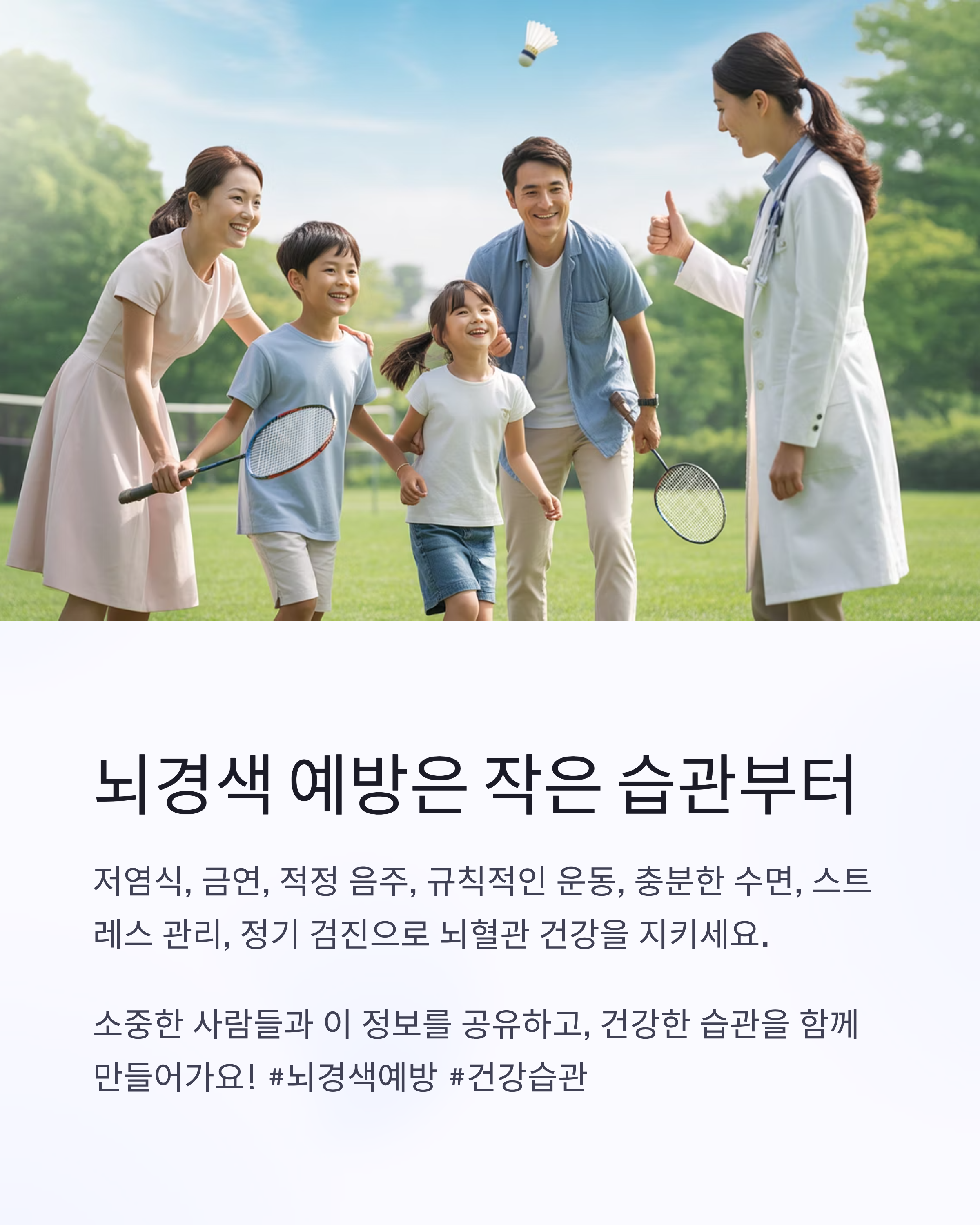 조기 발견과 꾸준한 관리는 뇌경색 예방의 핵심입니다.
