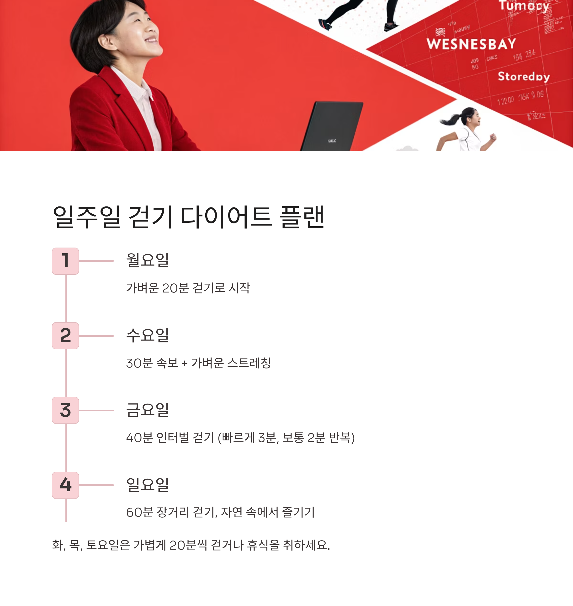운동화만 있으면 언제 어디서든 시작할 수 있어요