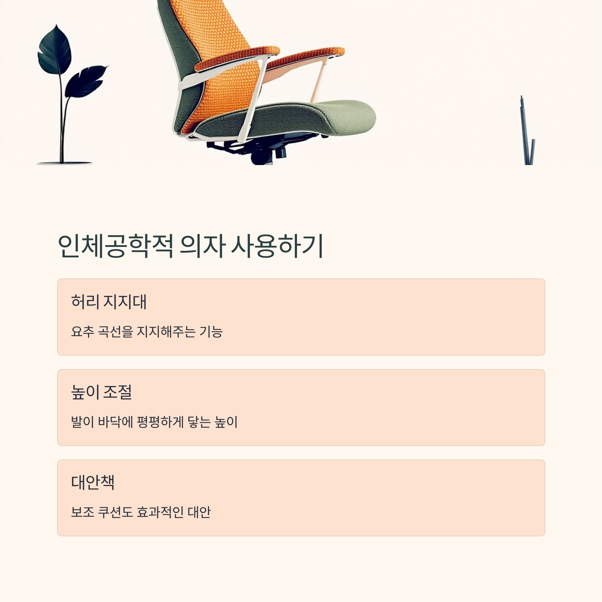 허리를 받쳐주는 인체공학적 의자 사용