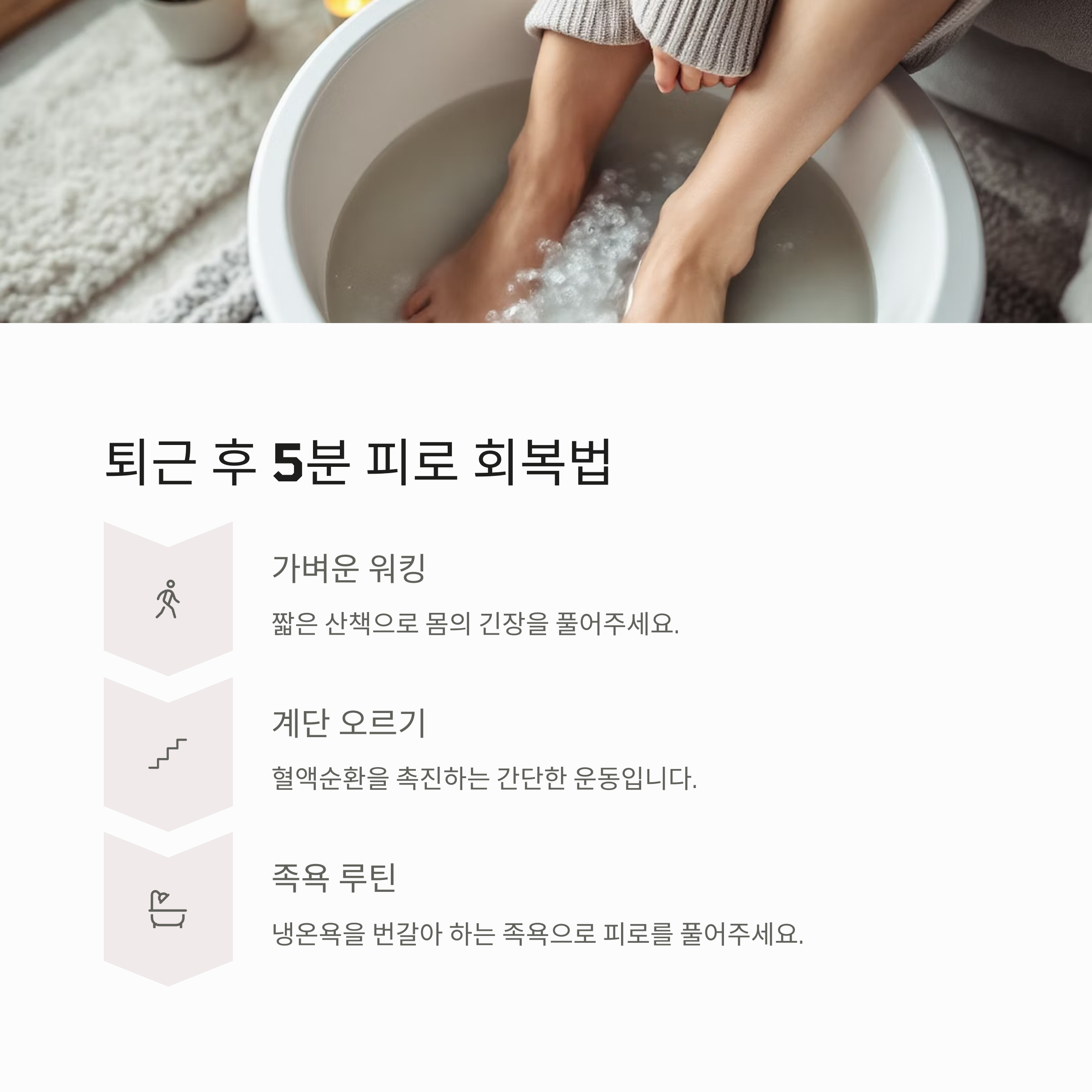 | 퇴근 후 | 걷기 또는 족욕 | 10분 |