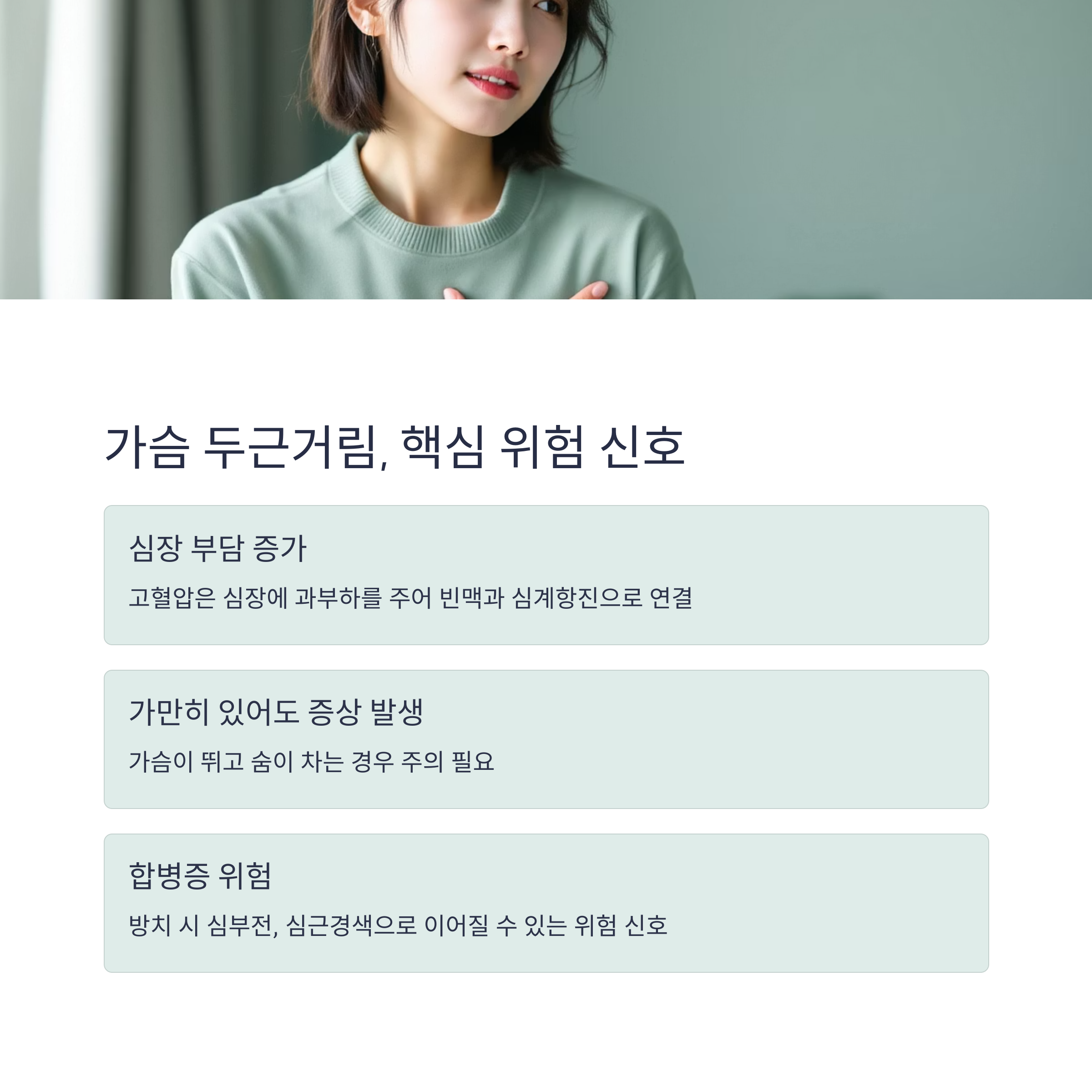 고혈압은 심장의 부담을 증가시키며, 빈맥과 심계항진으로 연결되기 쉽습니다