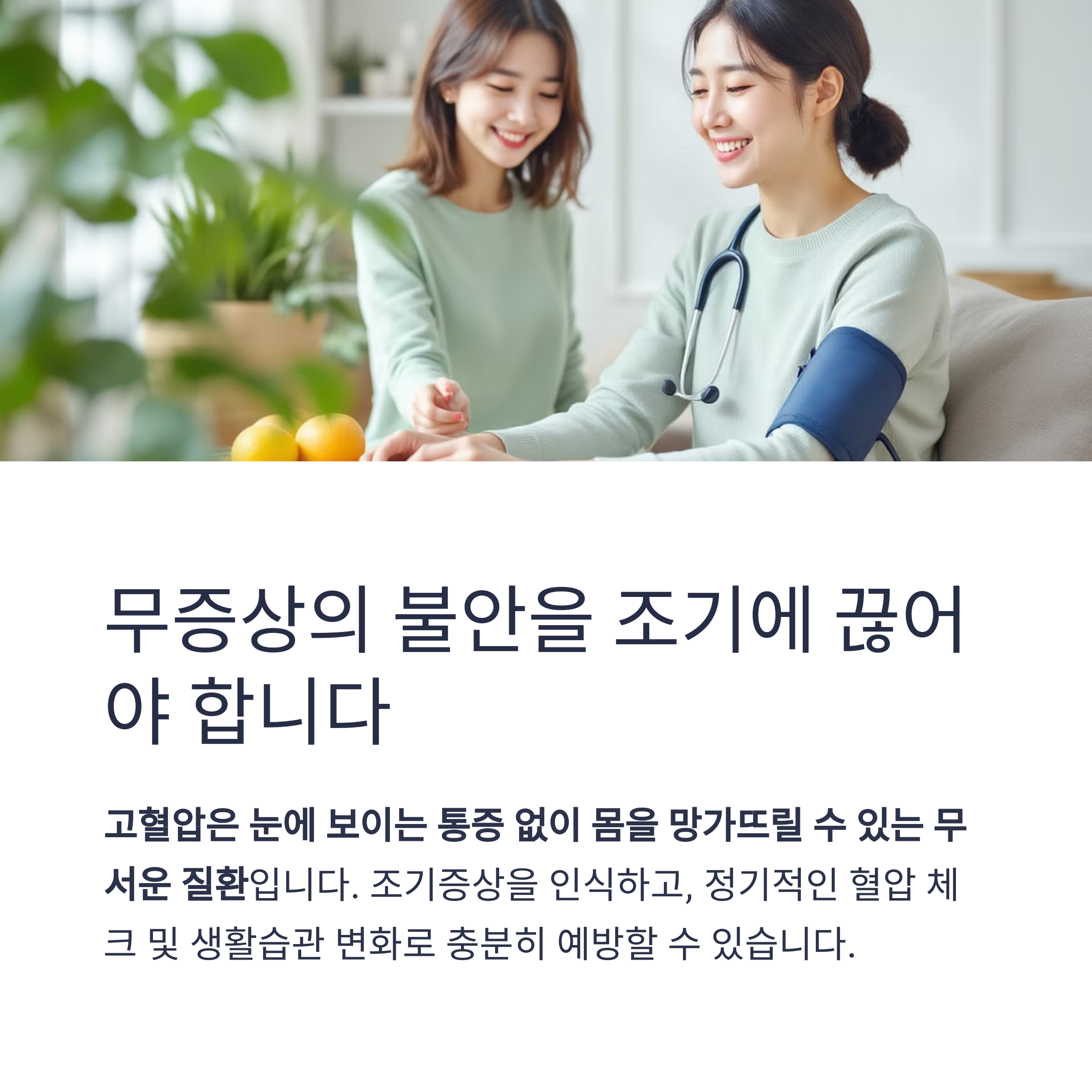 #고혈압초기증상 #심근경색위험 #뇌졸중예방 #혈압관리 #생활습관개선 #고혈압합병증