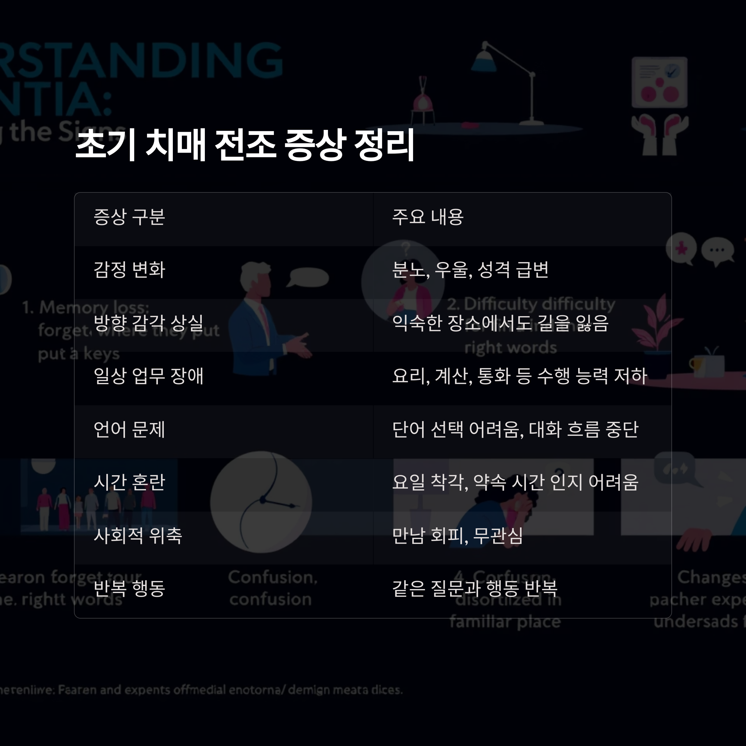 초기 치매 전조 증상 정리 표