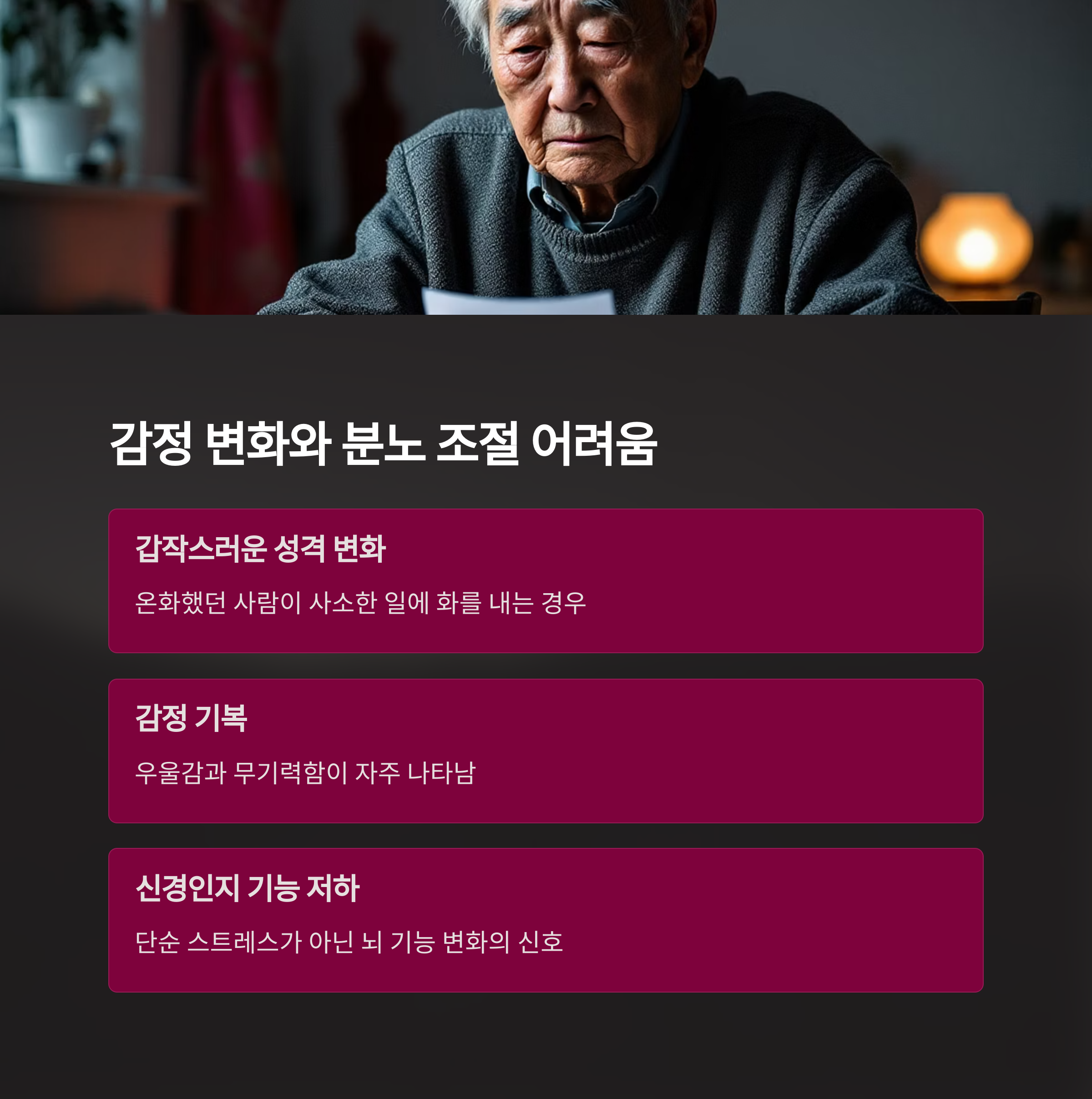 치매 초기에는 감정 조절이 어려워지는 경우가 많습니다