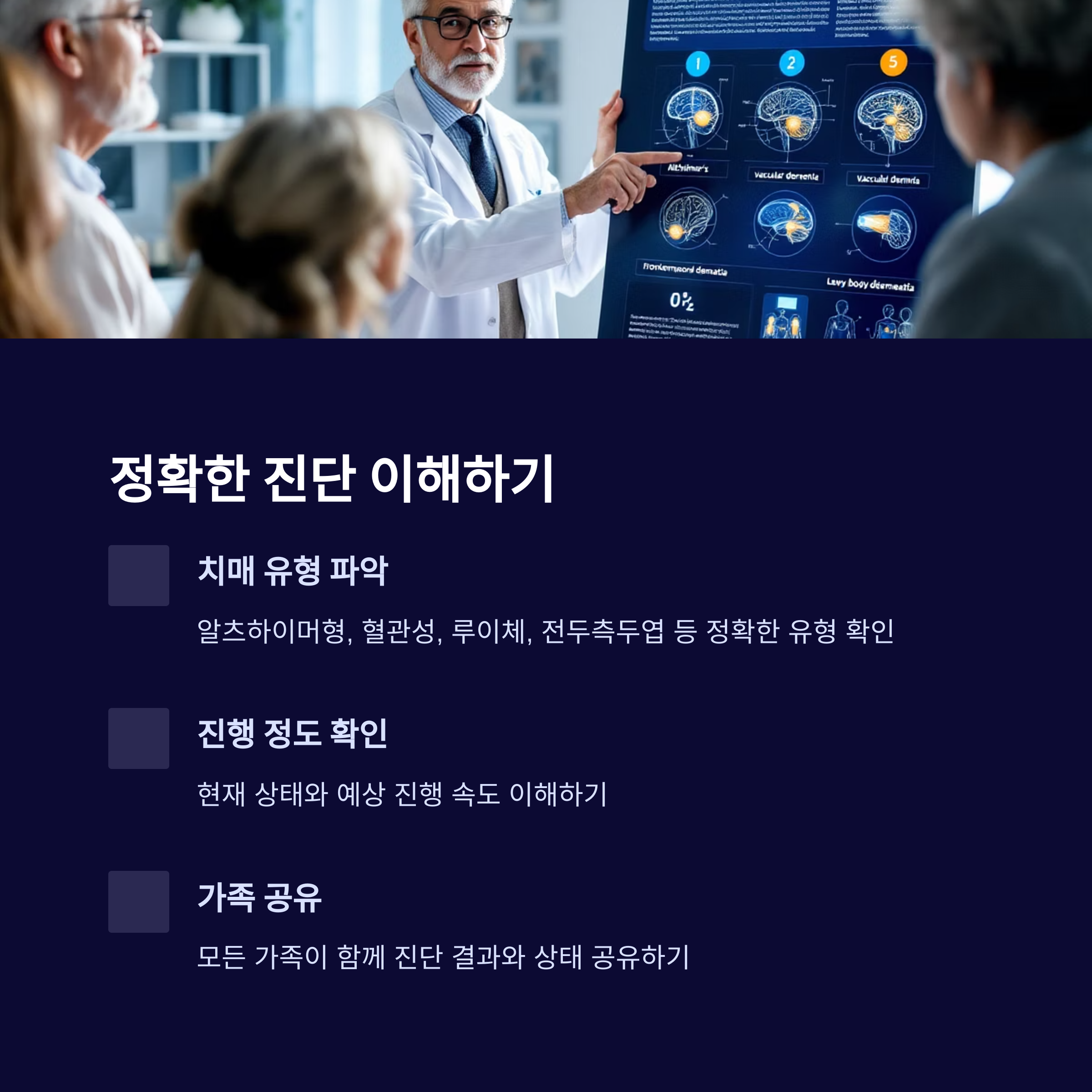 정확한 치매의 종류와 진행 정도를 이해해야 향후 치료 및 돌봄 계획을 세울 수 있습니다.