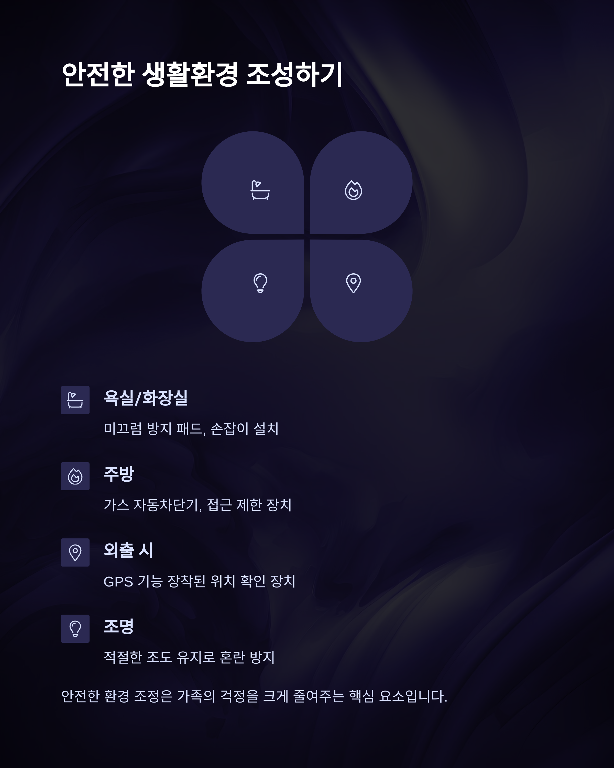 안전한 생활 환경 조정은 가족의 걱정을 크게 줄여주는 핵심 요소입니다.