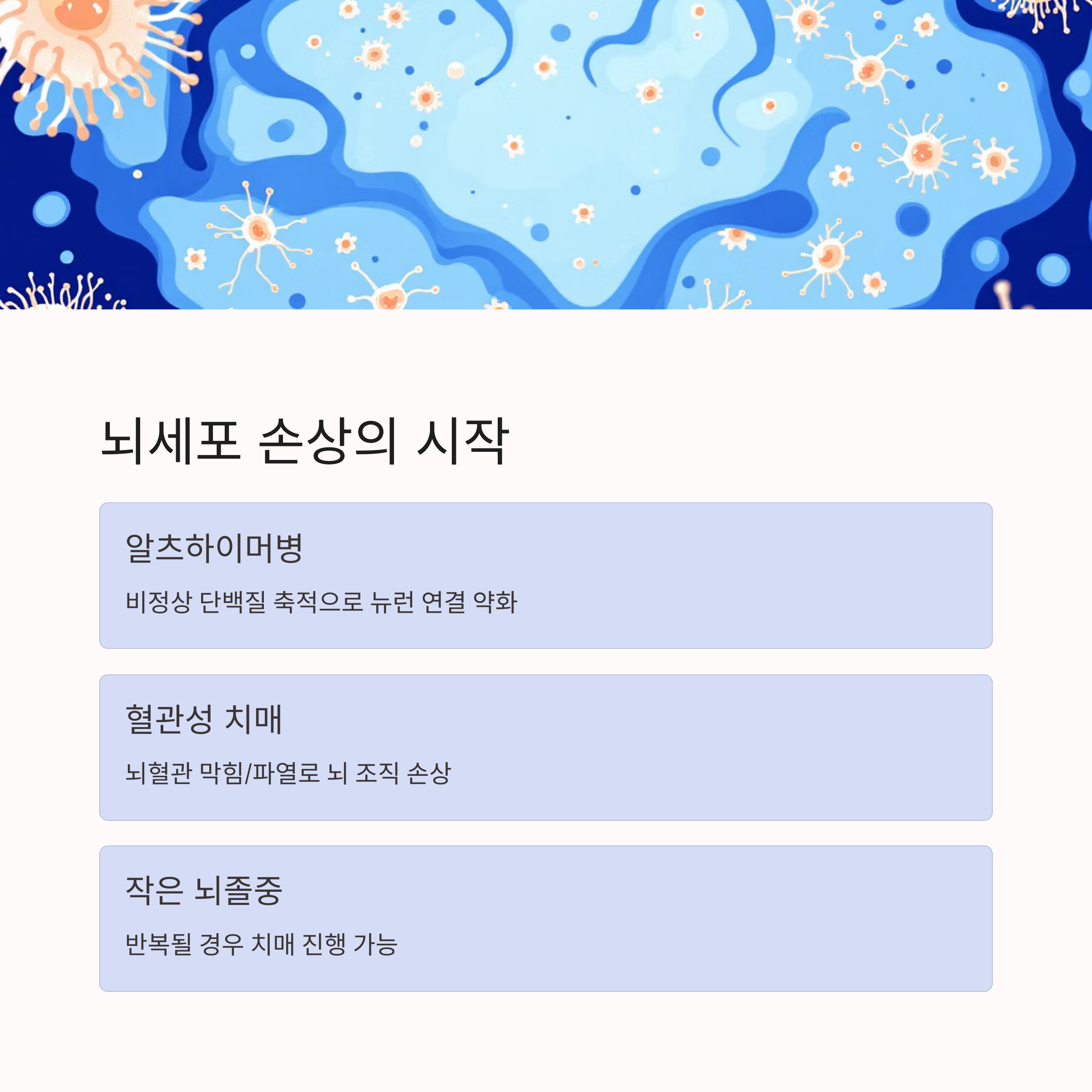 "작은 뇌졸중이 반복되는 것만으로도 치매가 진행될 수 있다"는 것이 핵심입니다.