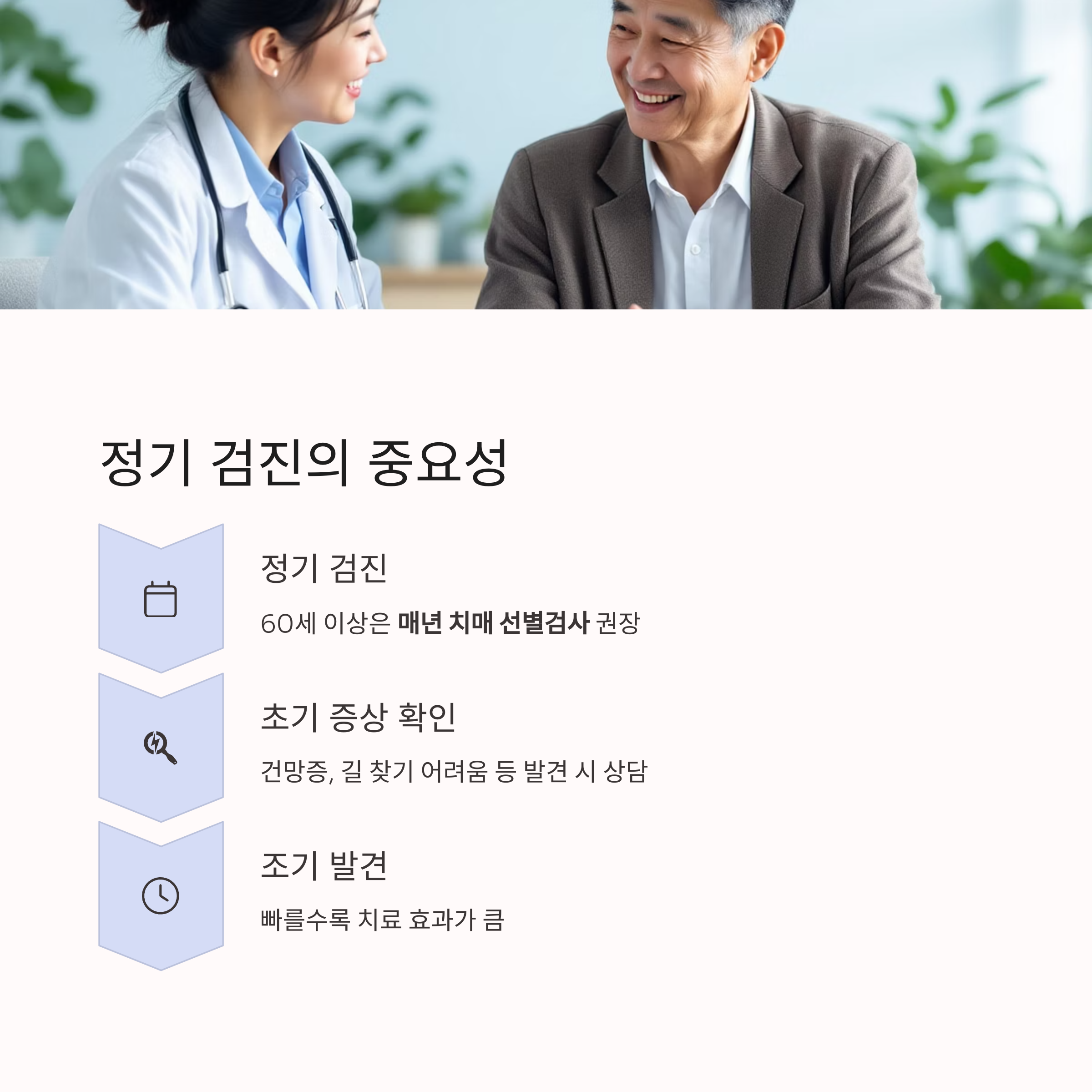 치매는 조기 발견할수록 치료 효과가 큽니다.