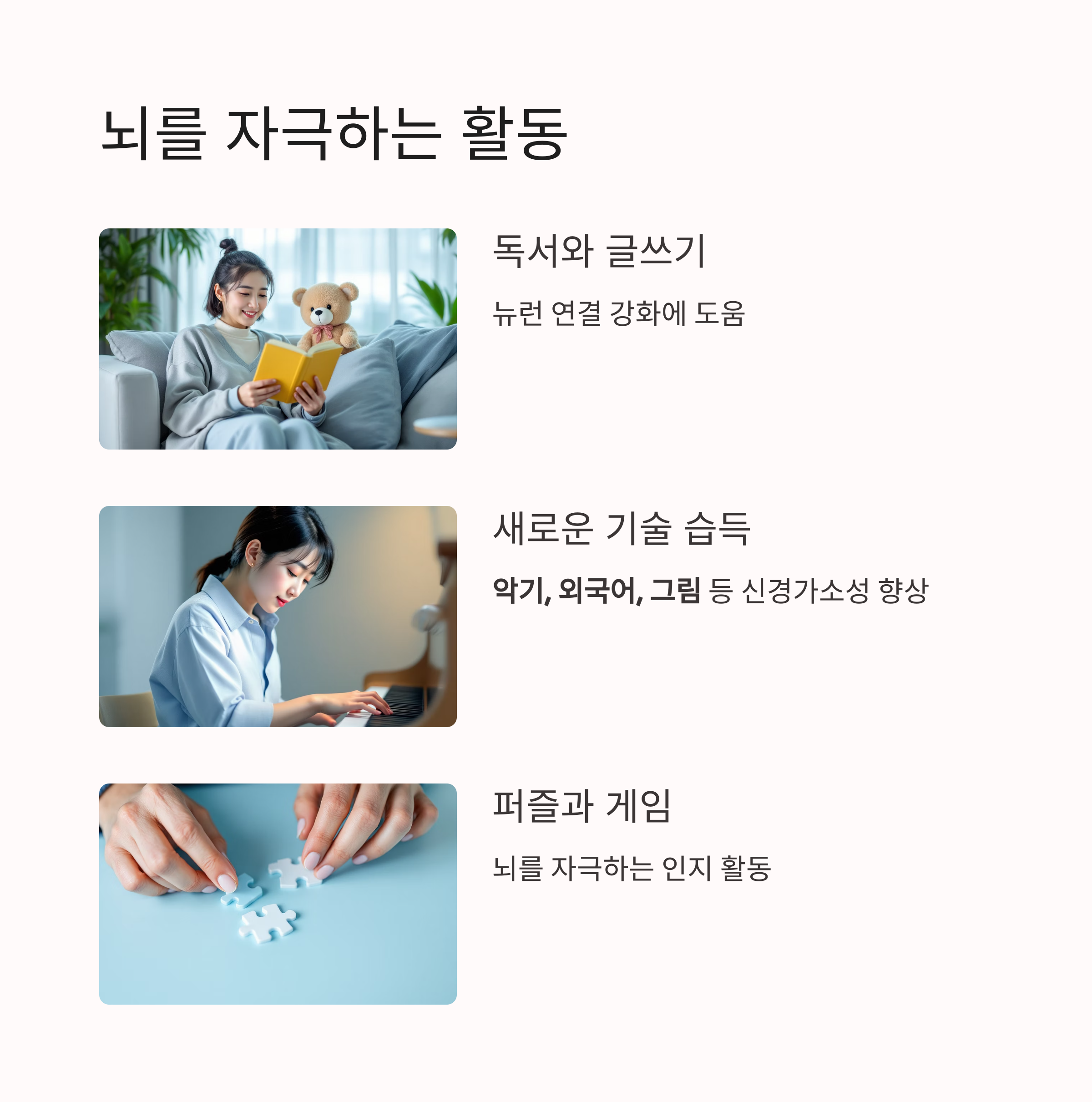 책을 읽고, 글을 쓰고, 퍼즐을 푸는 활동은