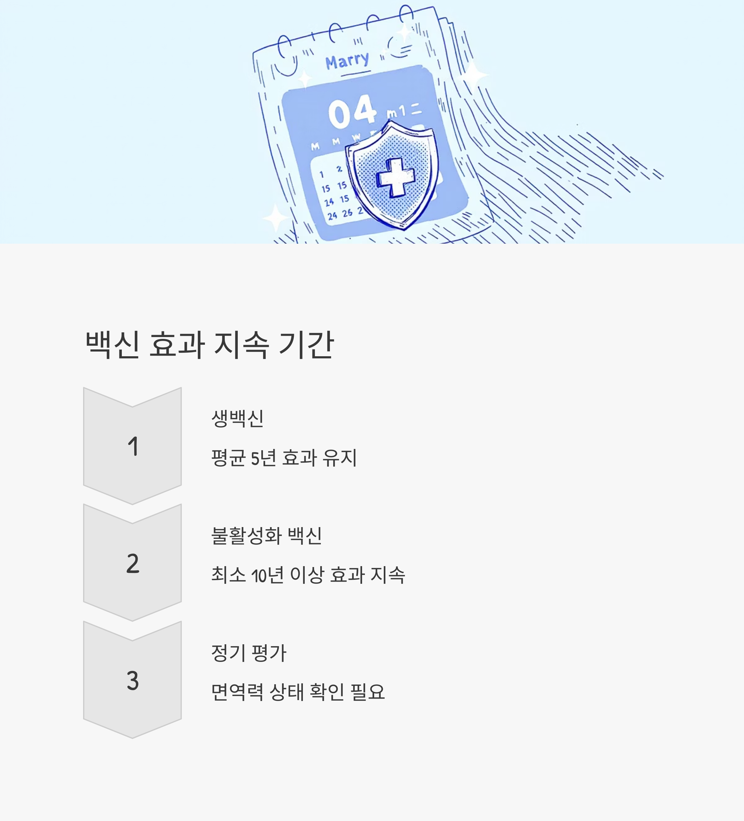 정기적인 면역력 평가와 필요 시 재접종 여부 판단이 중요합니다