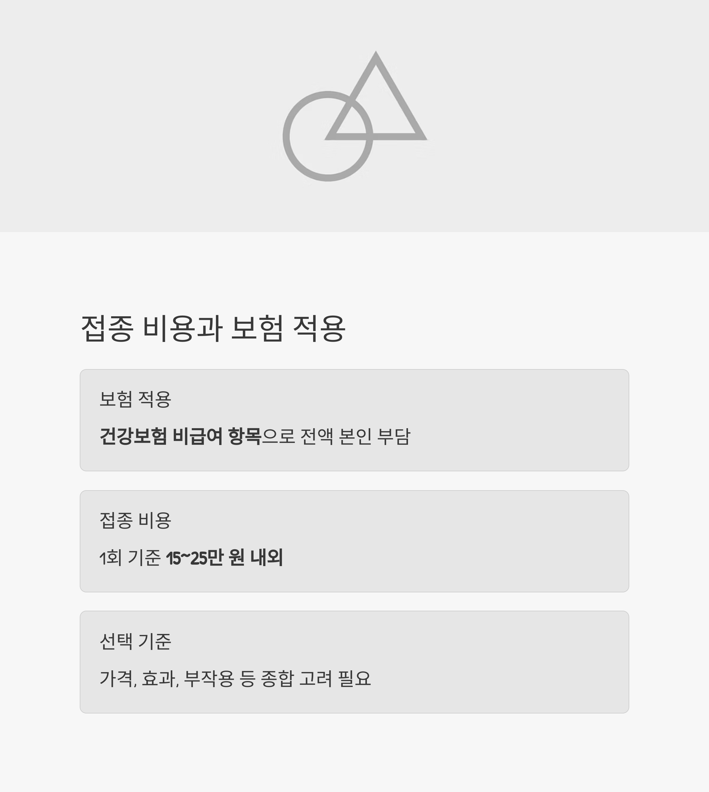 따라서 백신 선택 시 가격뿐 아니라 효과, 부작용, 접종 간격 등 다양한 요소를 종합 고려해야 합니다