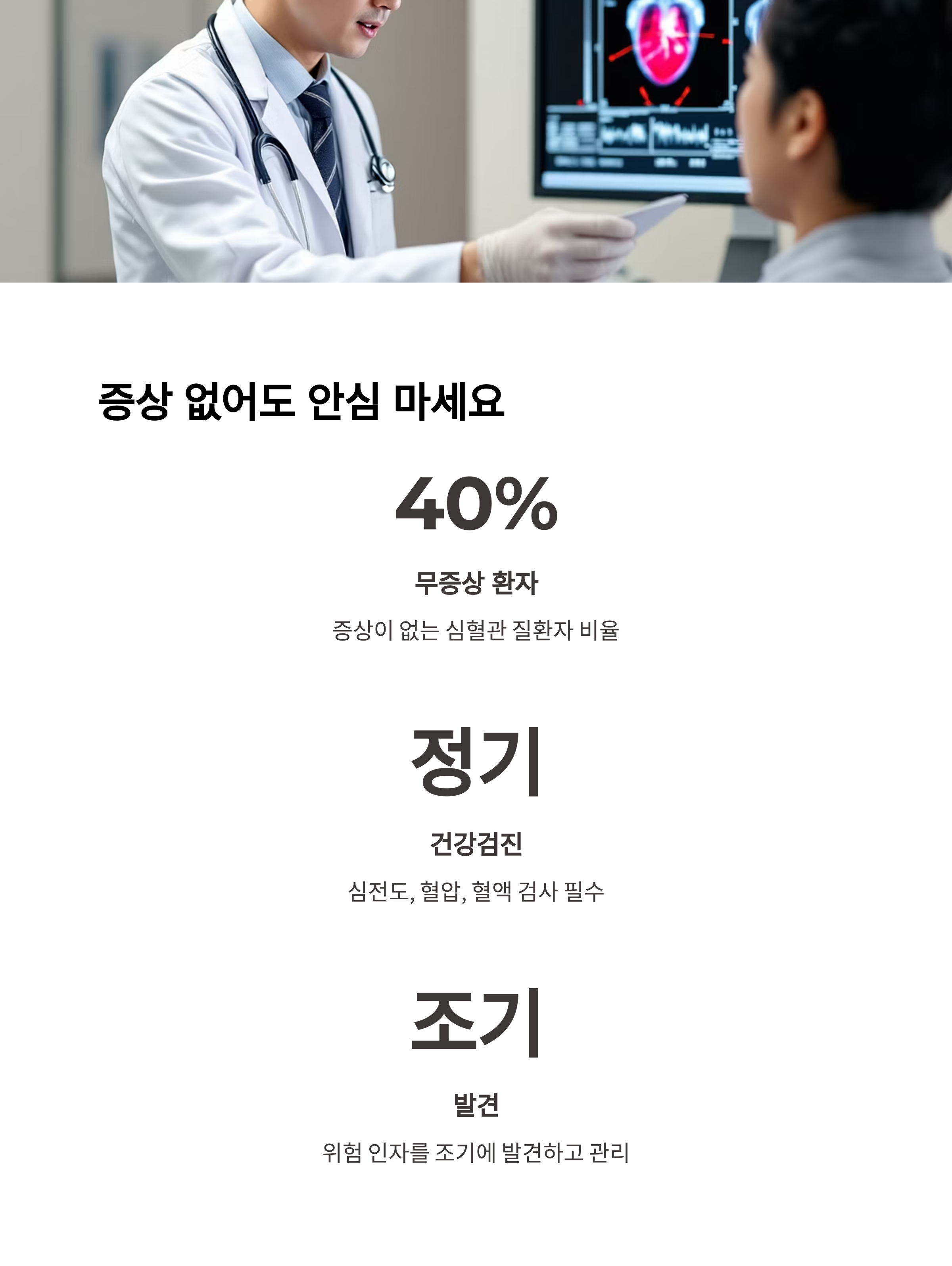 무증상 심혈관 질환자 비율은 전체의 40% 이상에 이른다는 통계가 있습니다