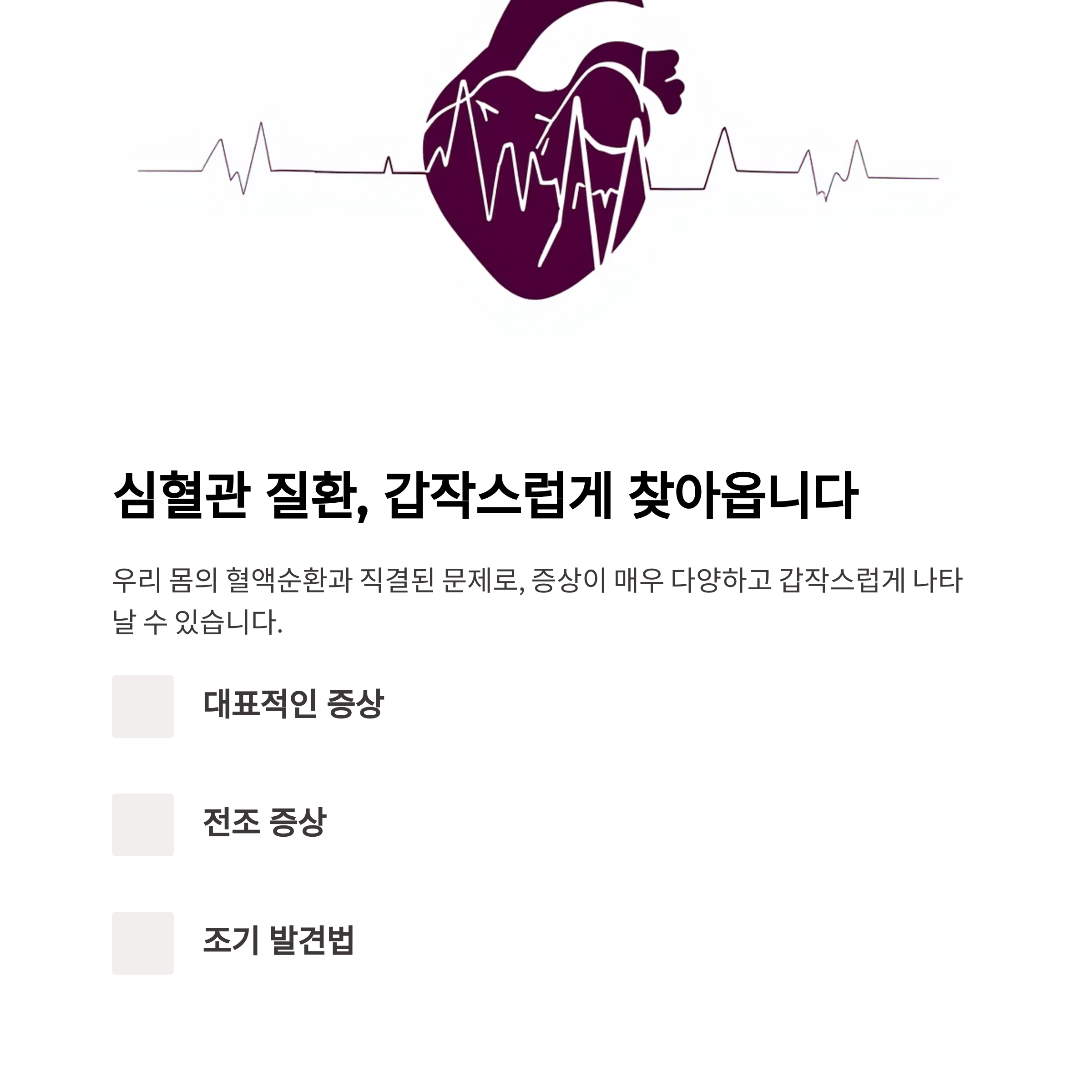 심혈관 질환은 조기 증상을 알아차리고 관리하는 것이 생명을 지키는 열쇠입니다