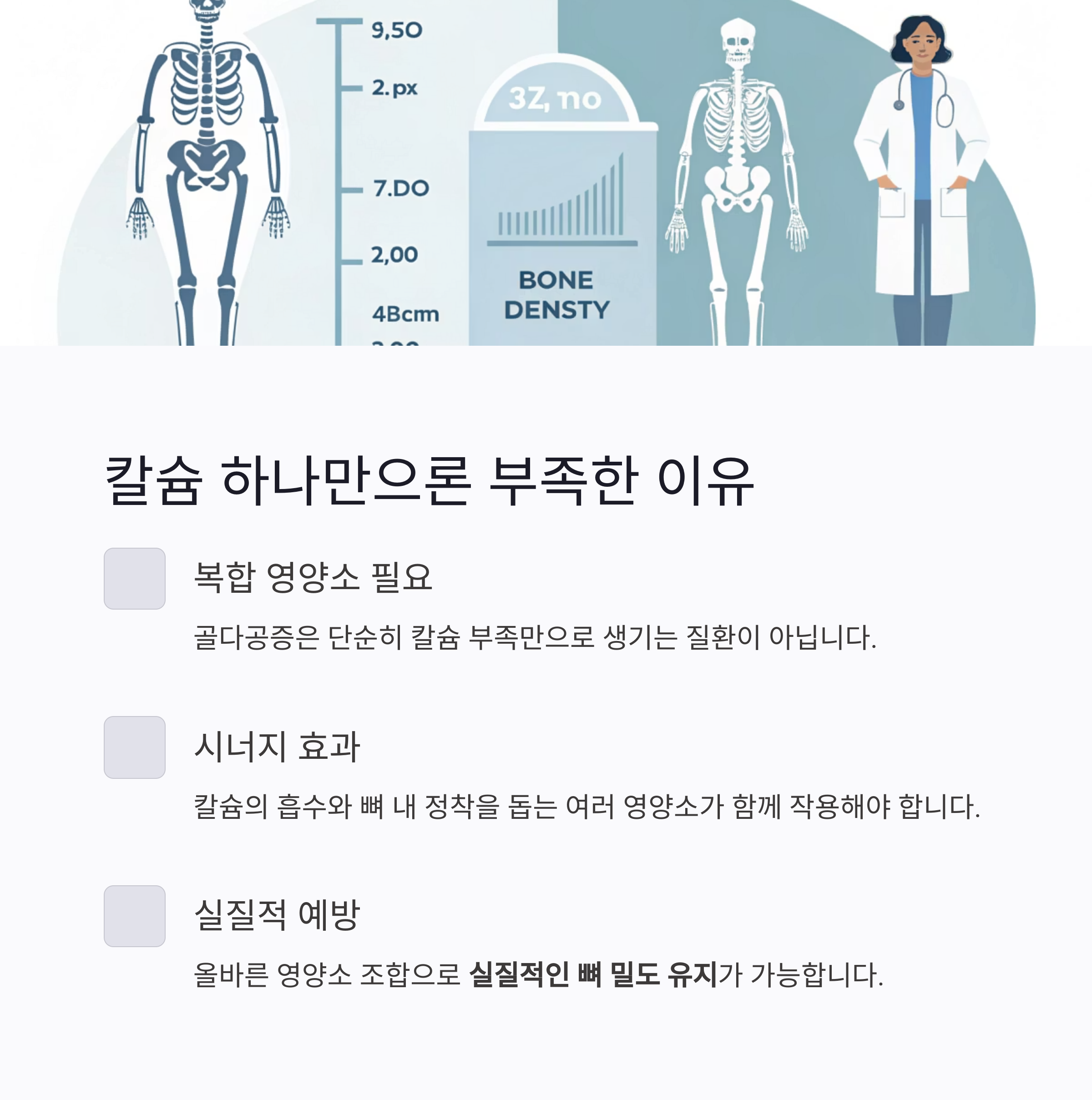 골다공증은 단순히 칼슘 부족만으로 생기는 질환이 아닙니다