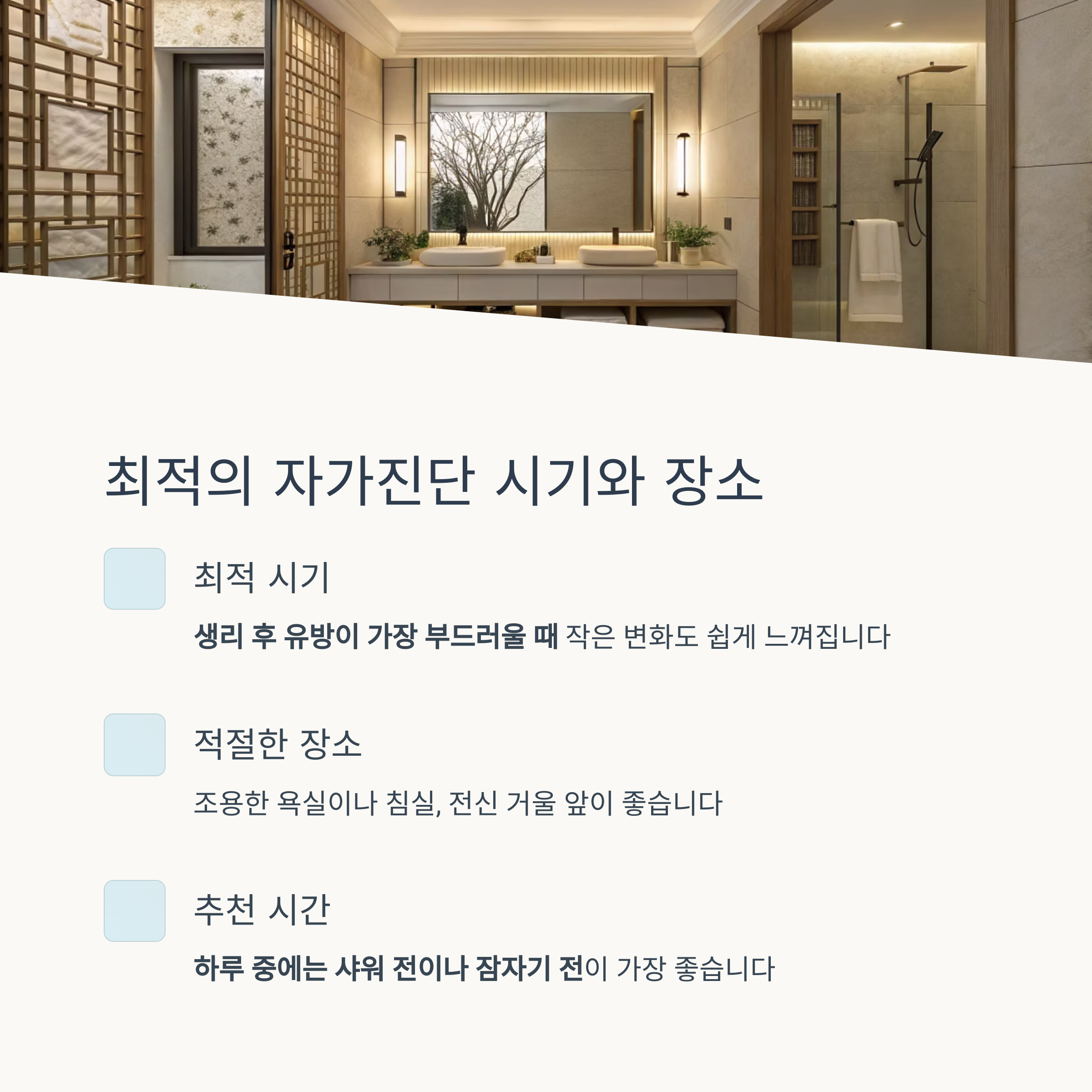 자가진단은 생리 후 유방이 가장 부드러울 때 시행하는 것이 이상적입니다
