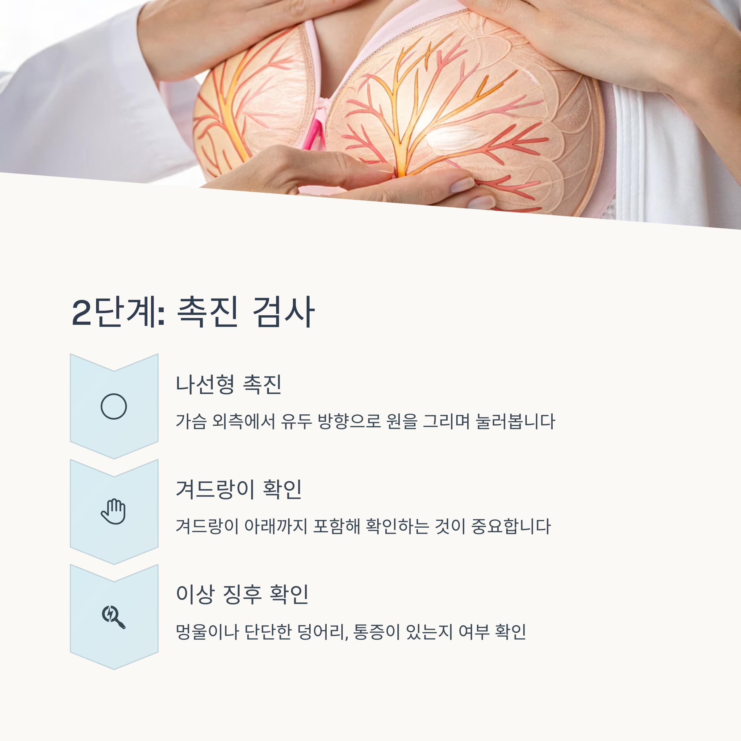 - 겨드랑이 아래까지 포함해 확인하는 것이 중요합니다