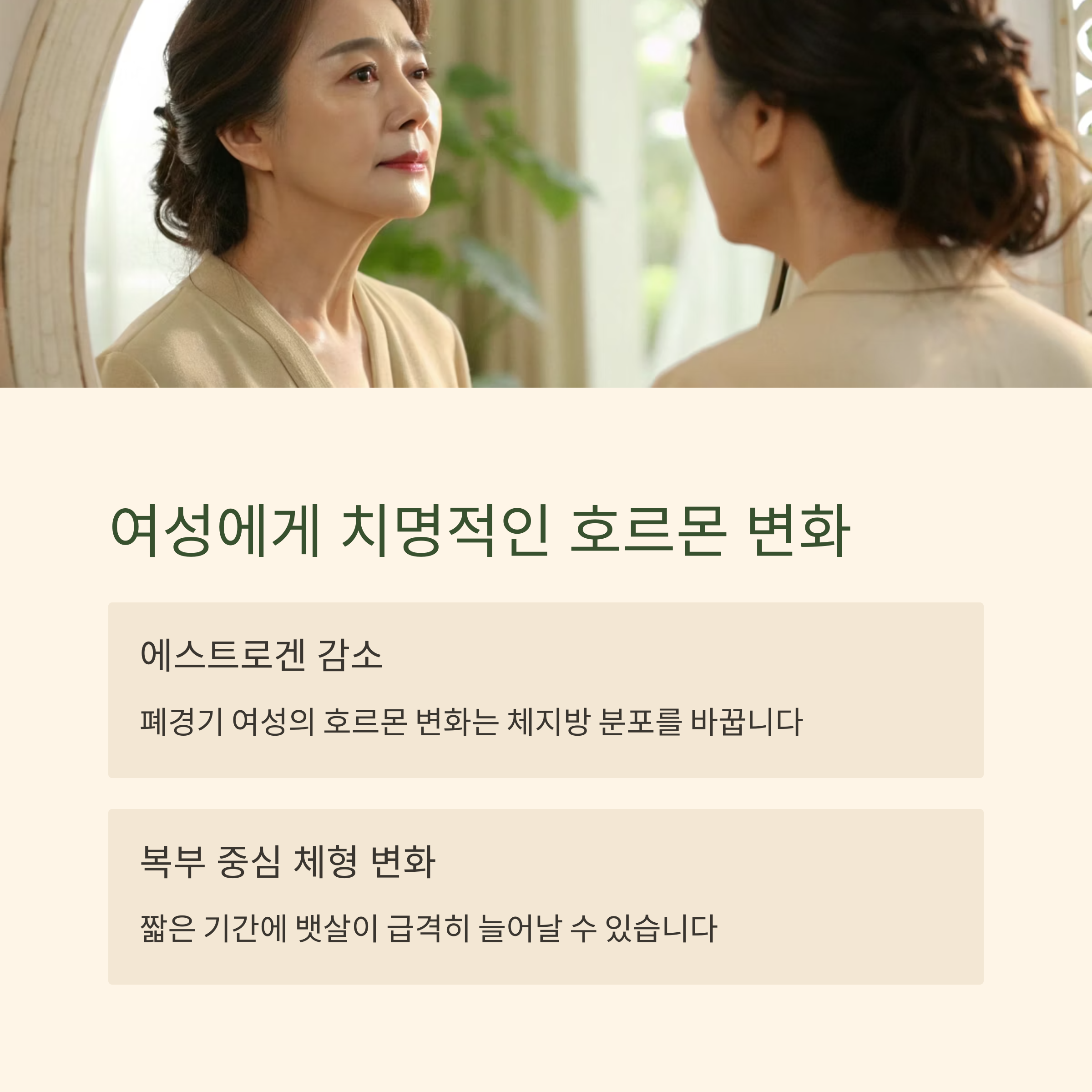 특히 체형이 사과형으로 변화하는 데 큰 영향을 줍니다.