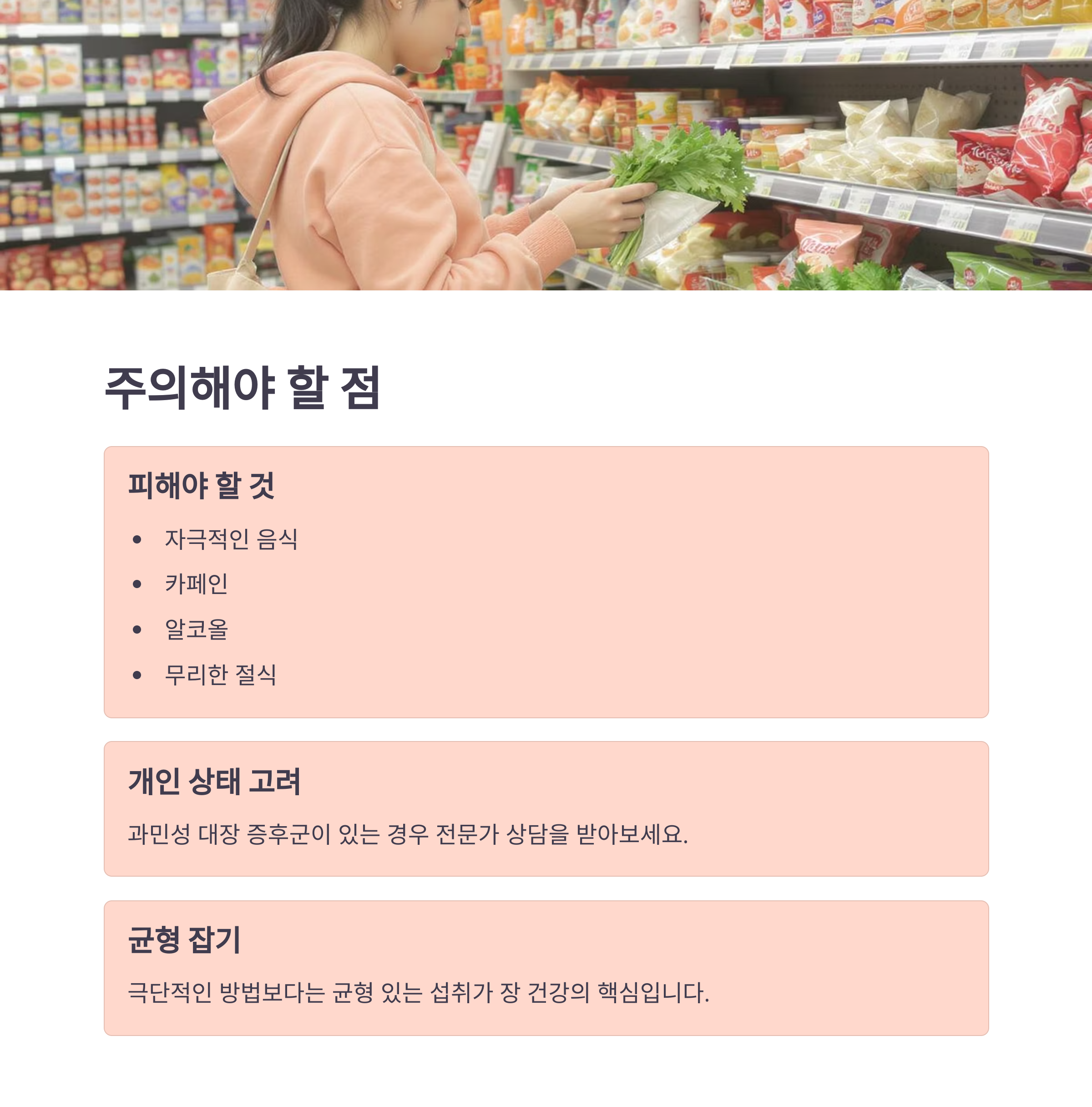 장 해독 중에는 자극적인 음식과 카페인, 음주는 피하는 것이 좋습니다.
