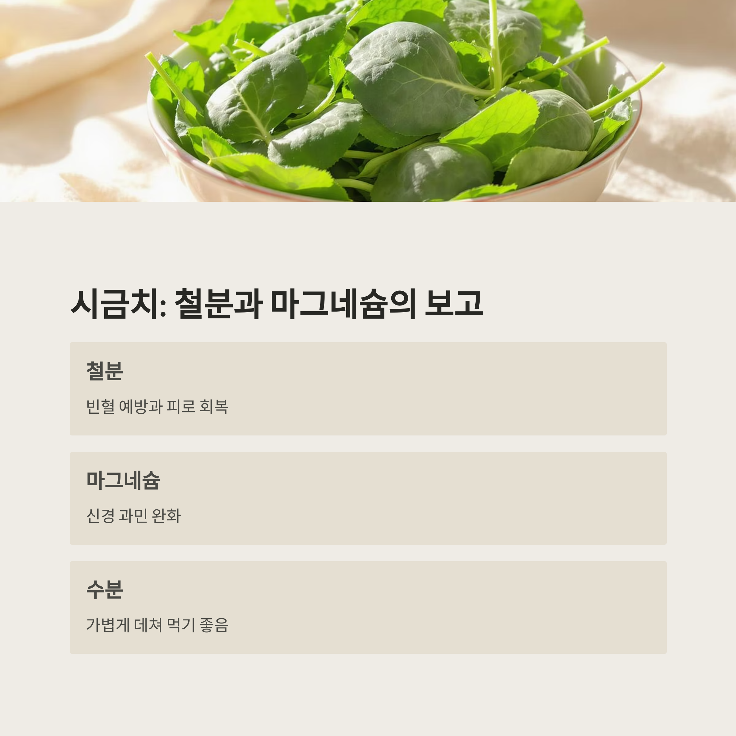 시금치: 마그네슘과 철분의 조합