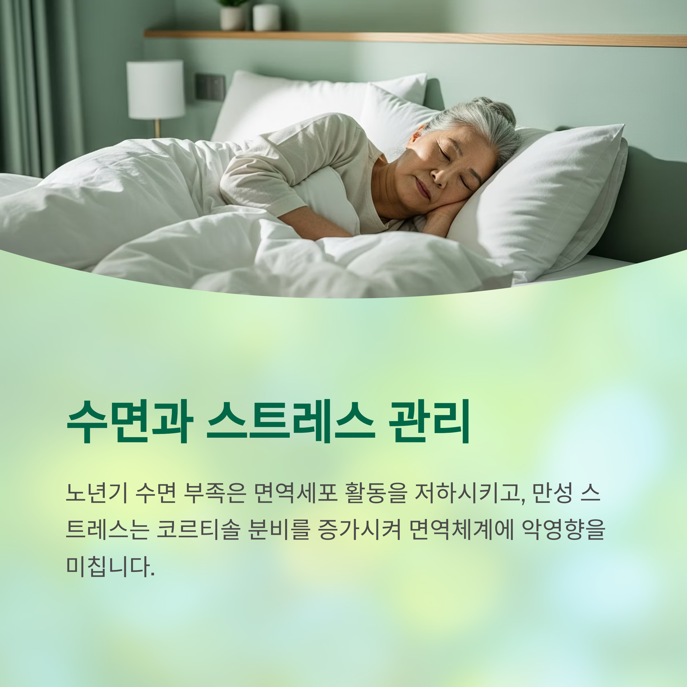 이로 인해 면역세포 활동이 저하되고 회복 능력도 떨어지게 됩니다.